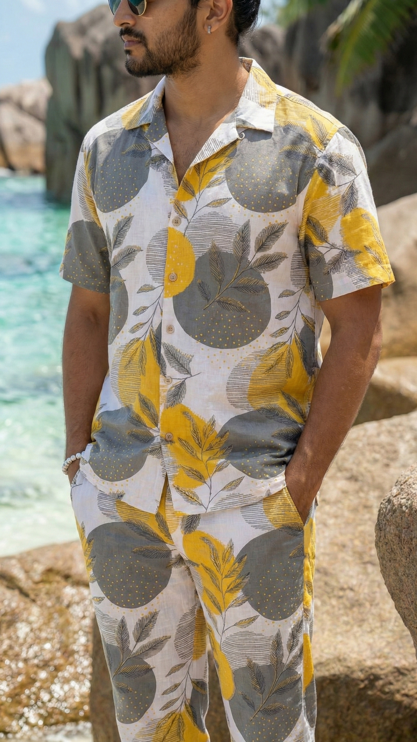 Made from a breathable linen blend, the fabric is light and airy enough for sweaty city days or salty sea breezes. The relaxed fit gives you freedom to move, lounge, explore, or just stand around looking cool. Whether you’re heading on a beach vacation, catching a flight, or grabbing an overpriced coffee, this co-ord makes the effort so you don’t have to.