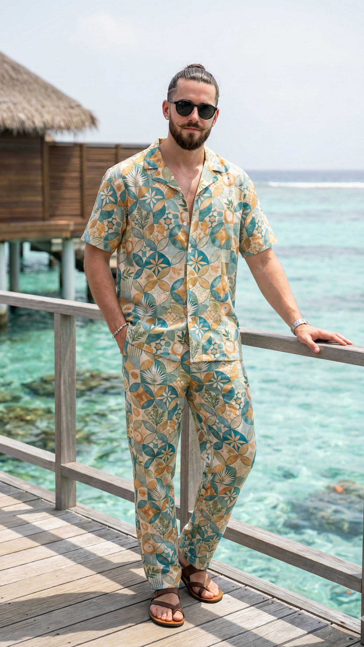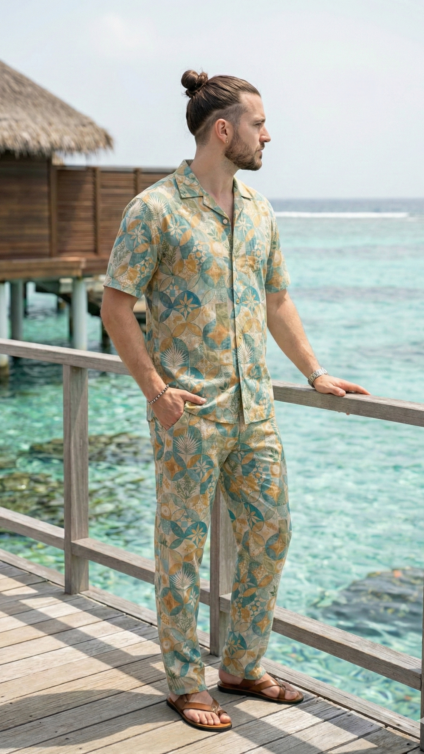 Made from a breathable soft linen blend, this set keeps you cool whether you're beach-hopping, brunch-bound, or just running errands with a little more main character energy. The relaxed fit gives you room to breathe and move without fuss. No stiff collars. No trying too hard. Just comfortable, confident style made for men who get the vibe.