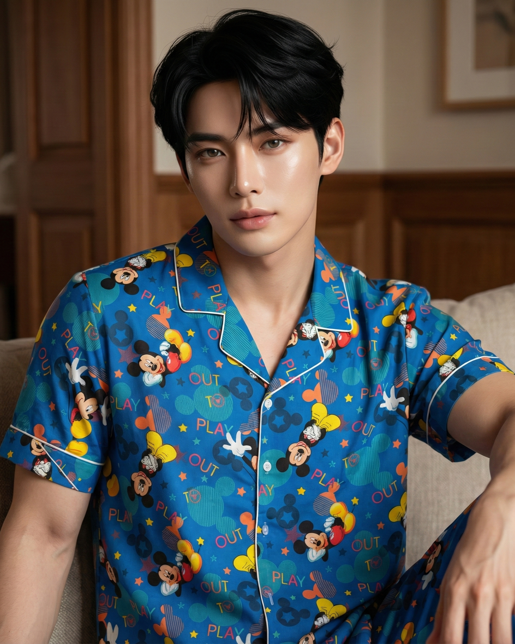Unleash your inner child without compromising on grown-up comfort with the Mickey Play Nightwear Set. Crafted from a premium soft cotton blend, this set feels like a gentle hug against your skin, perfect for winding down after a long day or lounging on a lazy weekend. The vibrant electric blue fabric serves as a playful canvas for the iconic Mickey Mouse, captured in spirited "Out to Play" poses that instantly spark nostalgia and joy.